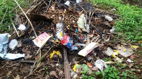 We can see that along with diapers there are some other waste material too that could have recycled if they were not contaminated. But now who would undertake a segregation of that sort! And, without segregating this waste how anyone from Municipality can dispose it. Periodically, they come and landfill the waste at the roadside itself after a little bit of excavation.